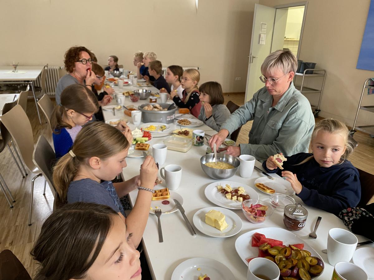 17.09.2025 Gesundes Frühstück Heute starteten die Katzen in die erste Runde des Gesunden Frühstücks. Foto: Binder Foto: Binder Foto: Binder Foto: Binder Foto: Binder Foto: Binder Schnippeln, würzen, rühren, kosten, würzen, rühren, kosten... Am Ende schmeckte es allen und das vitaminreiche Frühstück fand großen Zuspruch.
